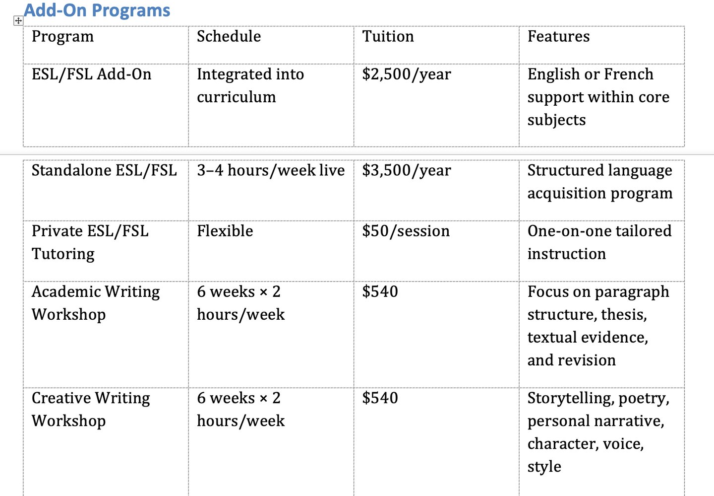 Program availability and enrollment options vary by format. Families are encouraged to contact us directly to discuss eligibility, scheduling, and program details.