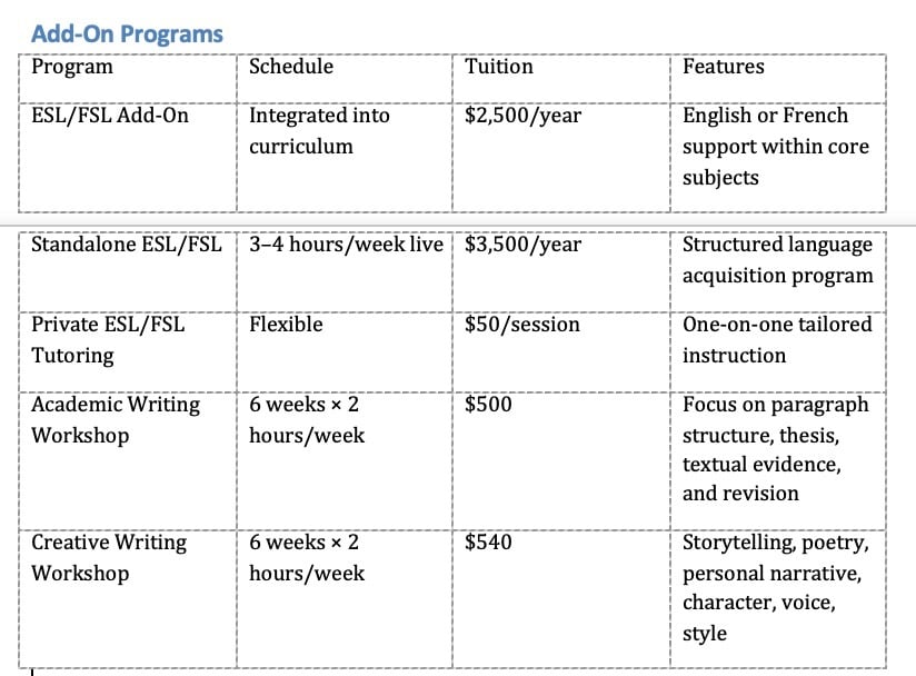 For students who opt for the full U.S. curriculum, we also provide the opportunity to continue studying French as a second language. Additionally, all students, regardless of their chosen path, can explore a wide range of electives such as art, music, STEM, creative writing, drama, global issues, and debate. These electives allow students to pursue their interests, develop their talents, and enhance their critical thinking and communication skills.